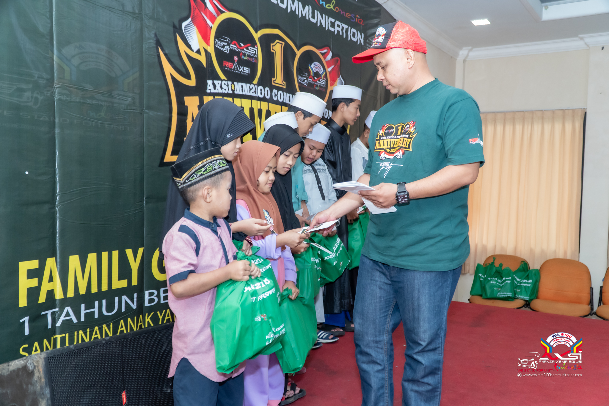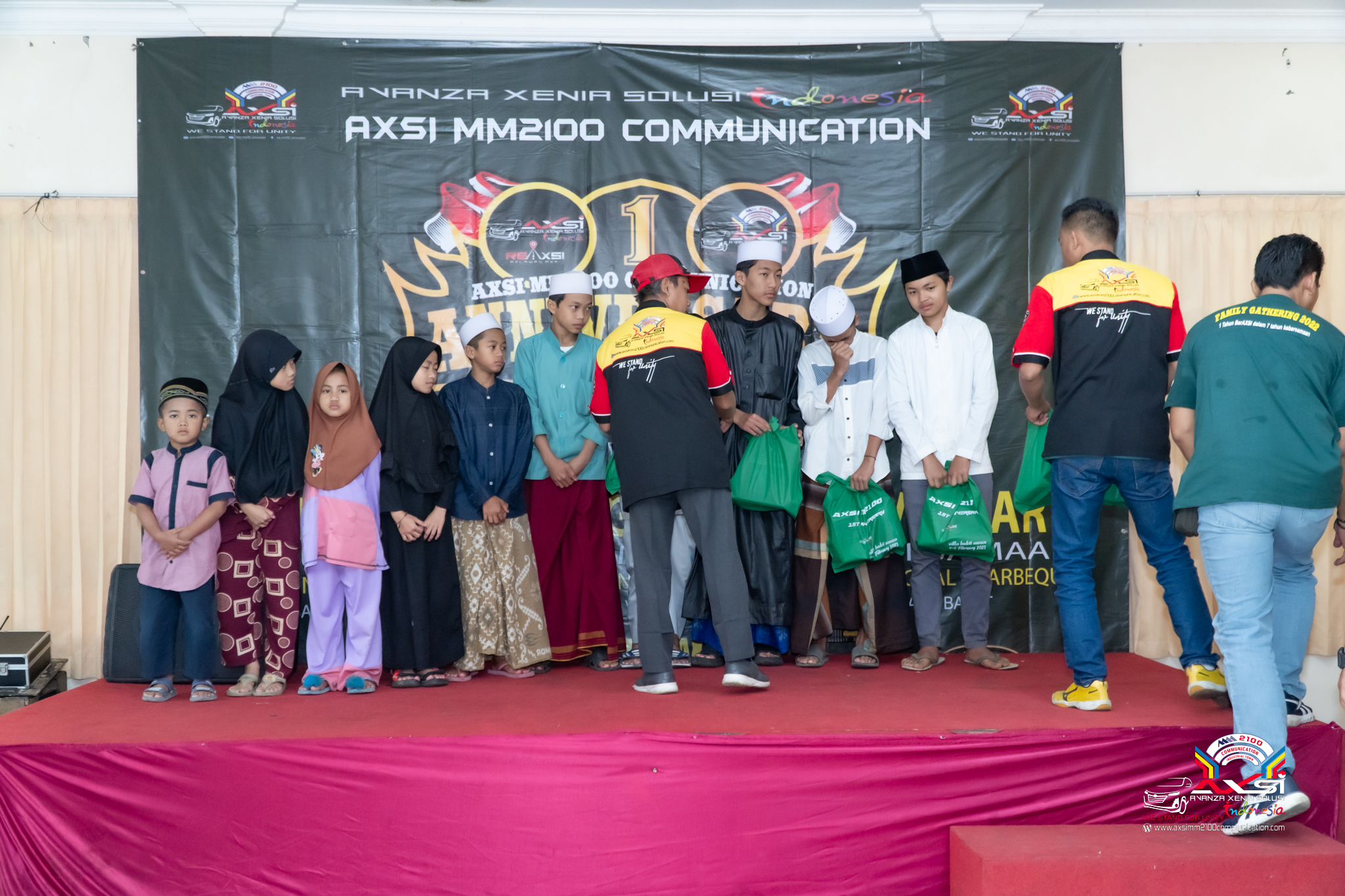 Acara Santunan Anak Yatim, akan senantiasa selalu mengiringi setiap event-event AXSI MM2100 Communication. Semoga yang Maha Kuasa selalu memudahkan jalannya sehingga silaturahmi selalu terjaga dengan baik.